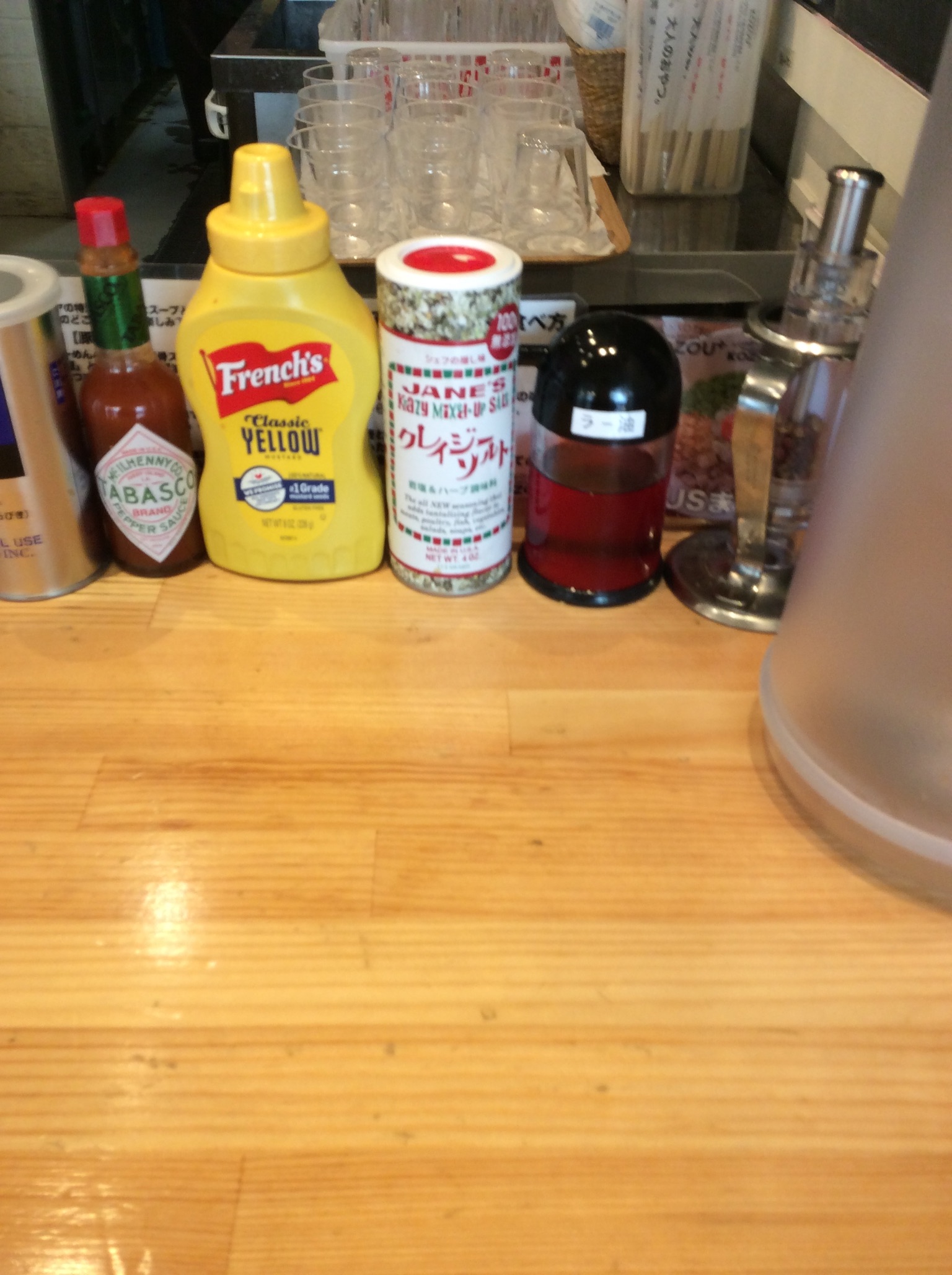 これでもか!というバリエーションの調味料がカウンターでお出迎えです。