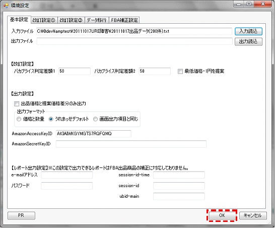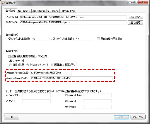 参考)AmazonAccessKeyIDとAmazonSecretKeyIDは下記の画面の赤枠ないのテキストボックスに入力します