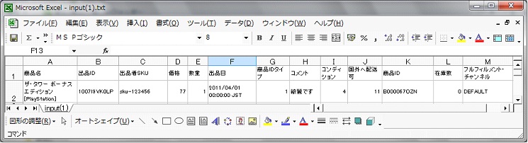 入力ファイルに出品詳細レポートが設定されました。