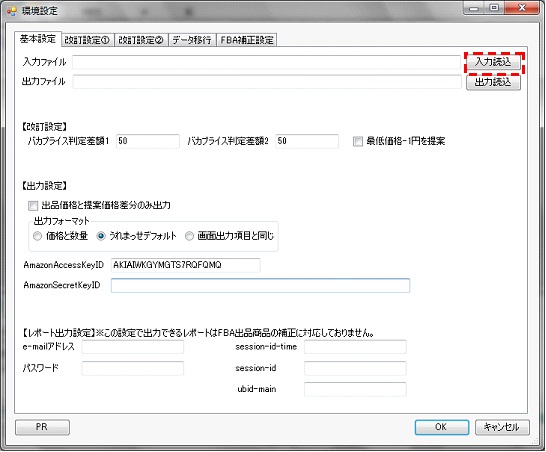 5.うれまっせの環境設定画面から出品詳細レポートを入力ファイルとして設定する