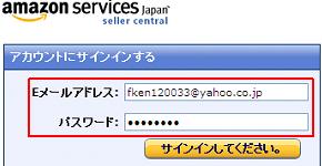 2.EメールアドレスとAmazonマーケットプレイスのパスワードを入力し、「サインインしてください」をクリック。
